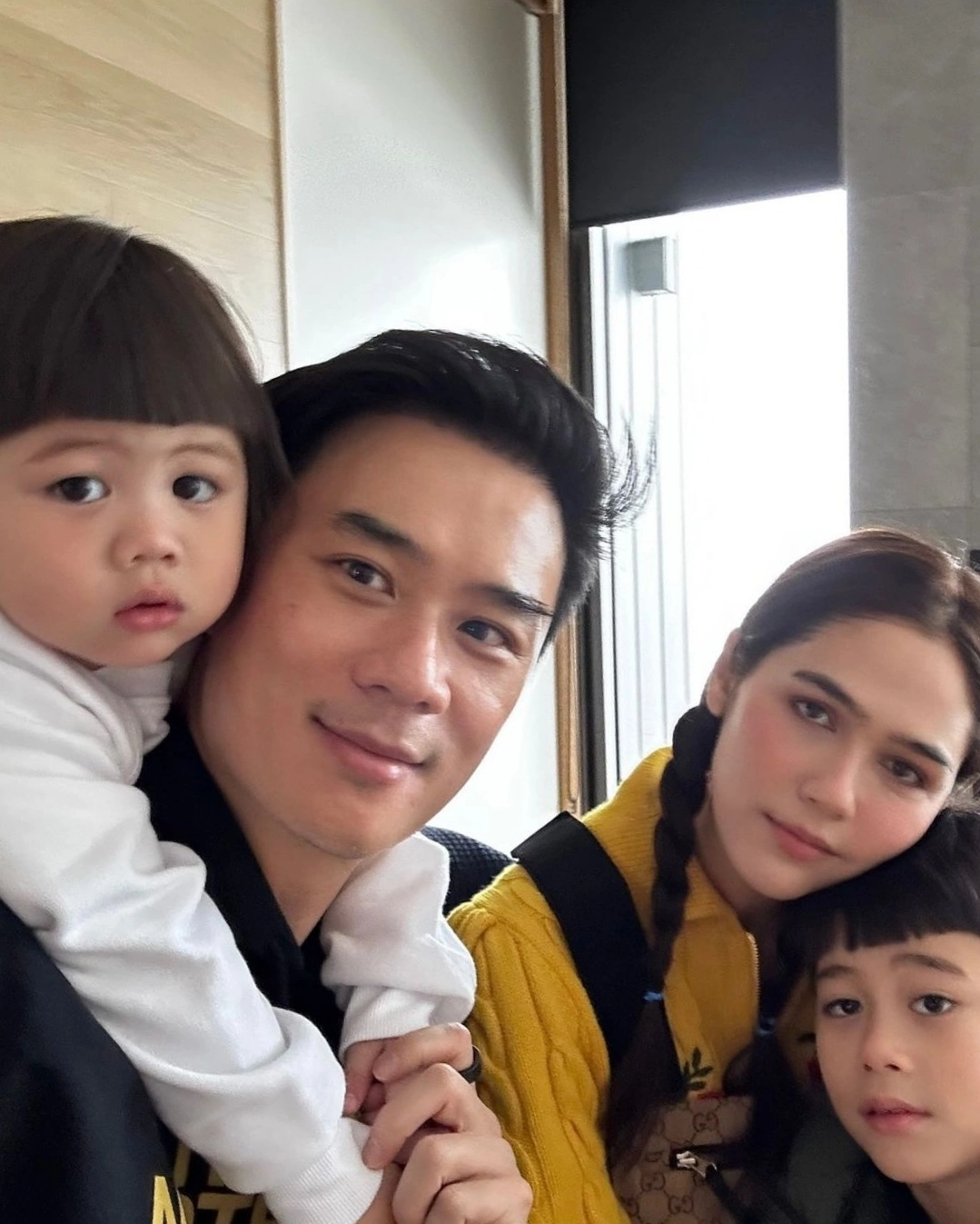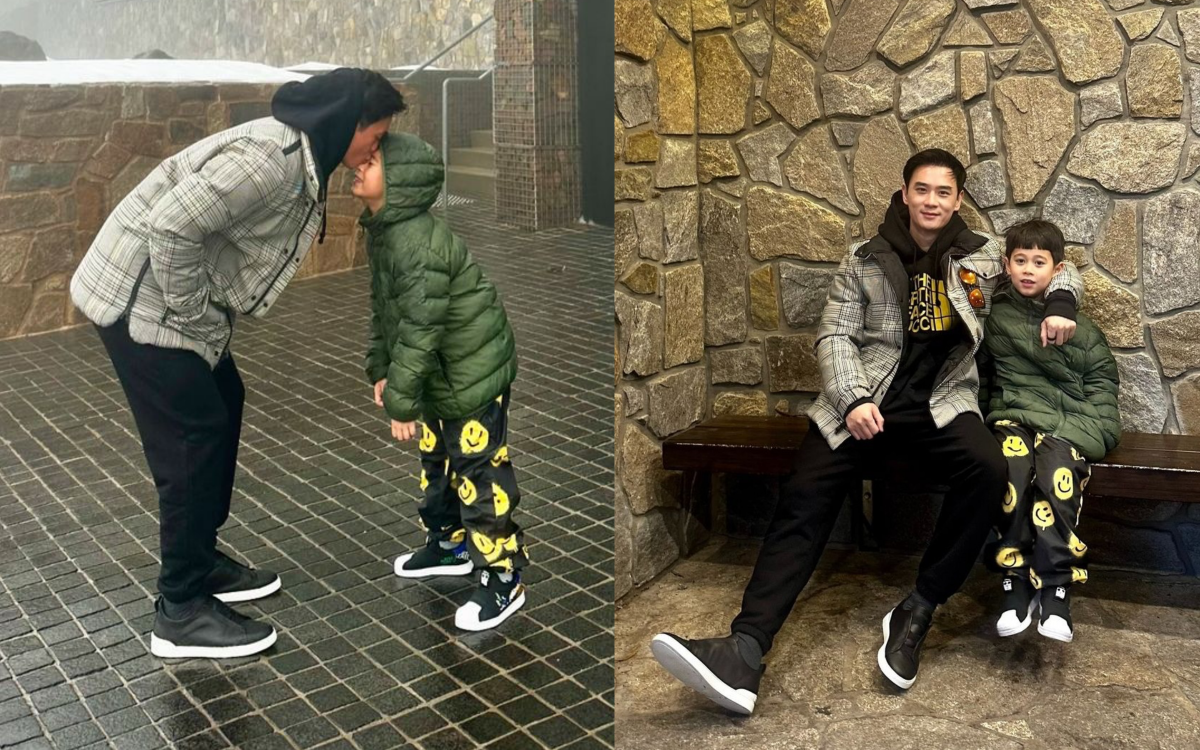 Chompoo chụp khoảnh khắc đẹp của chồng và con trai.