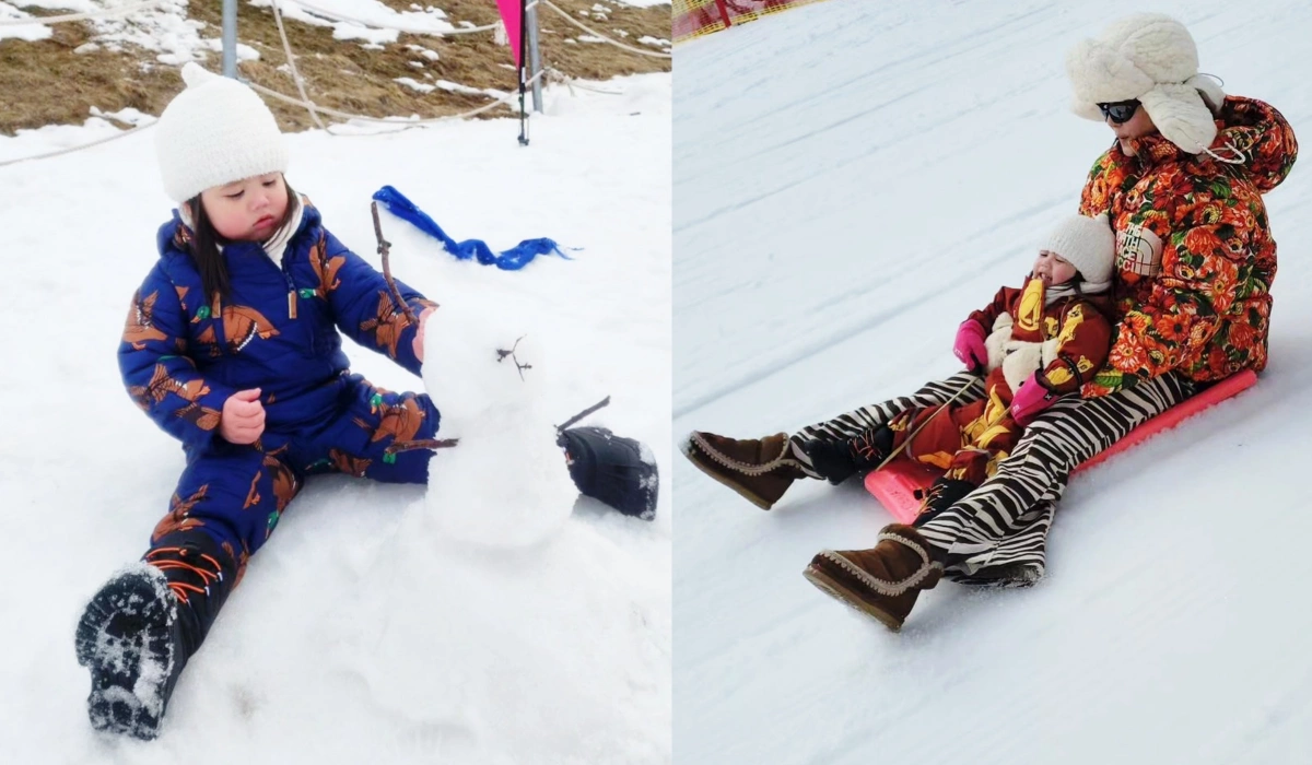 Nott Visrut ghi lại cảnh vợ con trượt tuyết, đắp người tuyết. Hình ảnh nhận hơn 220.000 lượt thích trên trang cá nhân của Chompoo.