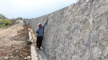 Anh Võ Huỳnh Thanh Trúc, phụ trách thi công cho biết, tường được làm bằng đá chẻ, kết cấu bêtông vững chắc.